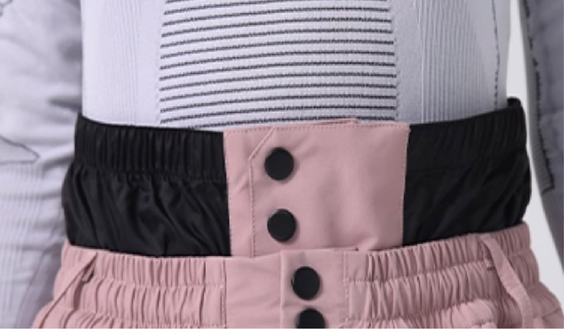 High-waisted powder skirt at the waist offers extra warmth and snow protection.