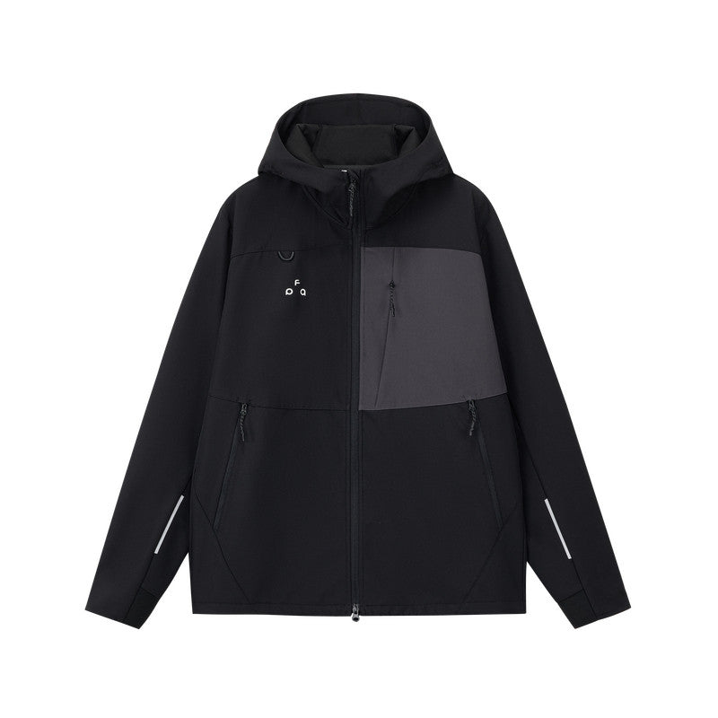Designed for everyday outdoor movement and city wear, this color-block softshell jacket balances clean aesthetics with functional protection. The jacket uses a water-repellent softshell fabric with a breathable inner mesh structure, helping block light rain and wind while maintaining comfort during activity. A streamlined hooded silhouette, reinforced paneling, and subtle technical detailing make it suitable for outdoor sports, commuting, and casual wear in cool weather.