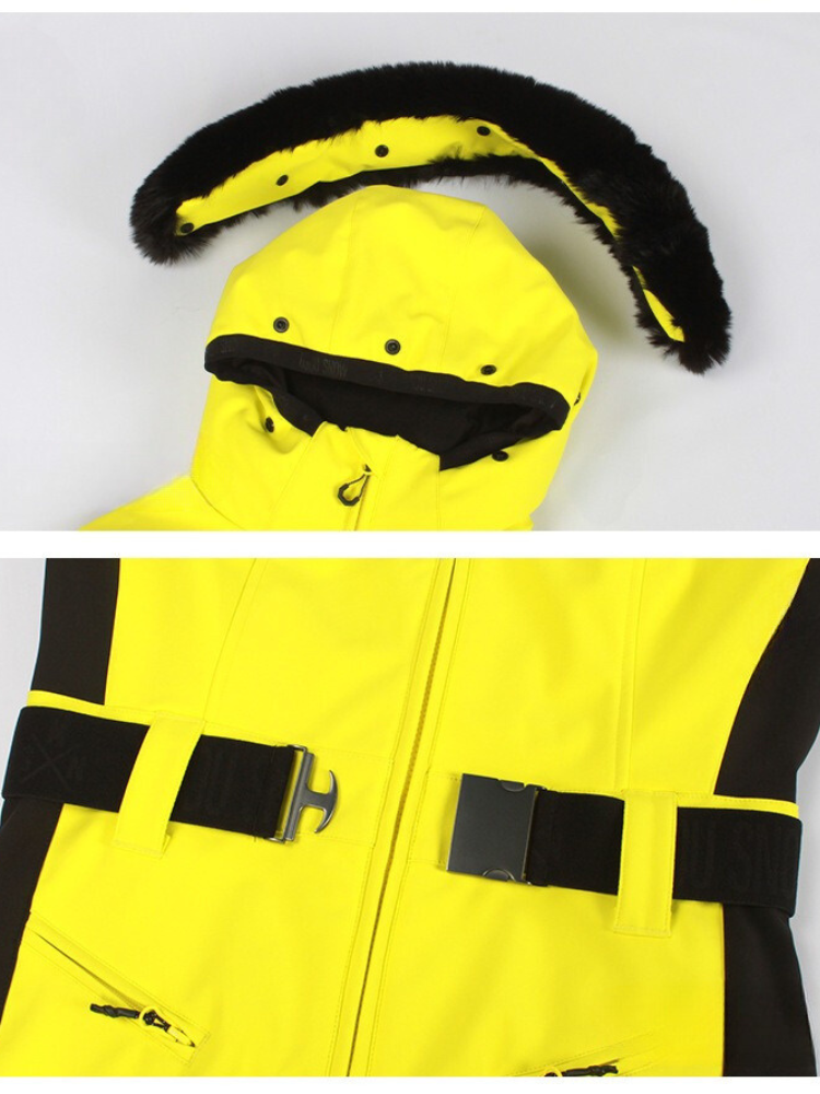 Elevate your winter look with the Classic Faux-Fur Ski Jumpsuit – Women’s | Gsou Snow — a slim-fit one-piece crafted from premium materials and offered in vibrant color options. Designed with cozy down insulation, waterproof-breathable protection, and a removable faux-fur hood, this jumpsuit combines mountain-ready function with après-ski elegance.