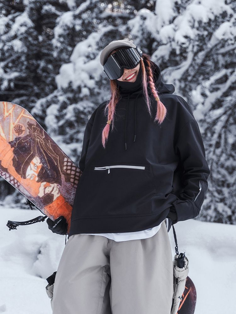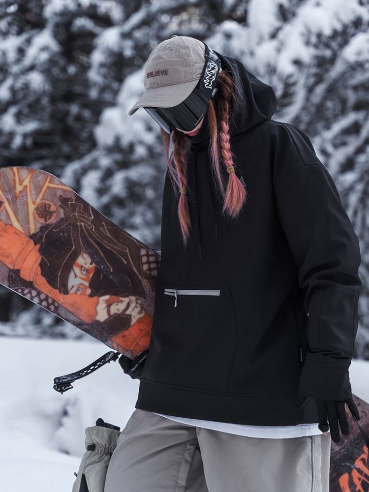 It brings jacket-level function to a clean hoodie form—perfect when you want low-key style with real on-mountain utility.