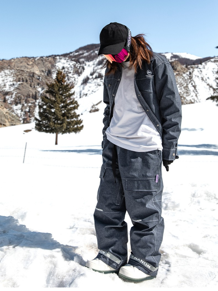 Jeans vibe, mountain build. These baggy women's snow pants bring a denim-inspired look with 10K/10K weather protection, so you can lap the park, cruise groomers, and still roll into après looking put together. The relaxed silhouette moves easy without the sloppy feel, and the adjustable waist keeps your fit locked when you turn up the pace.