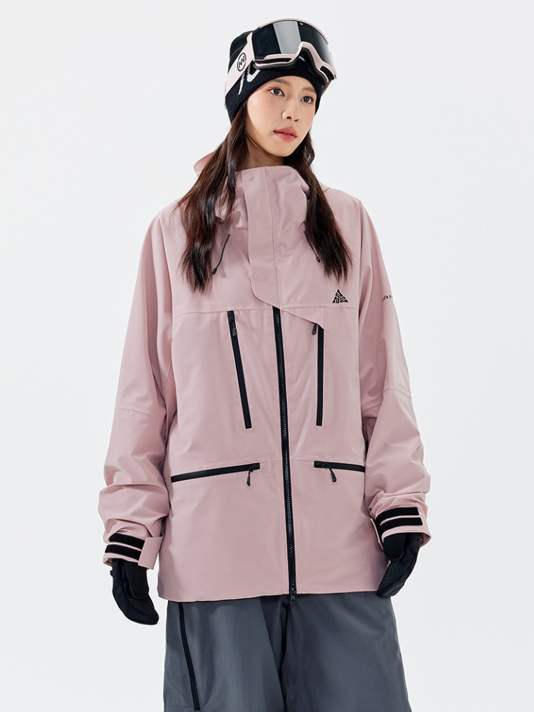 Pockets: Handwarmer pockets, sleeve pass pocket, chest zipper pockets, internal goggle pocket