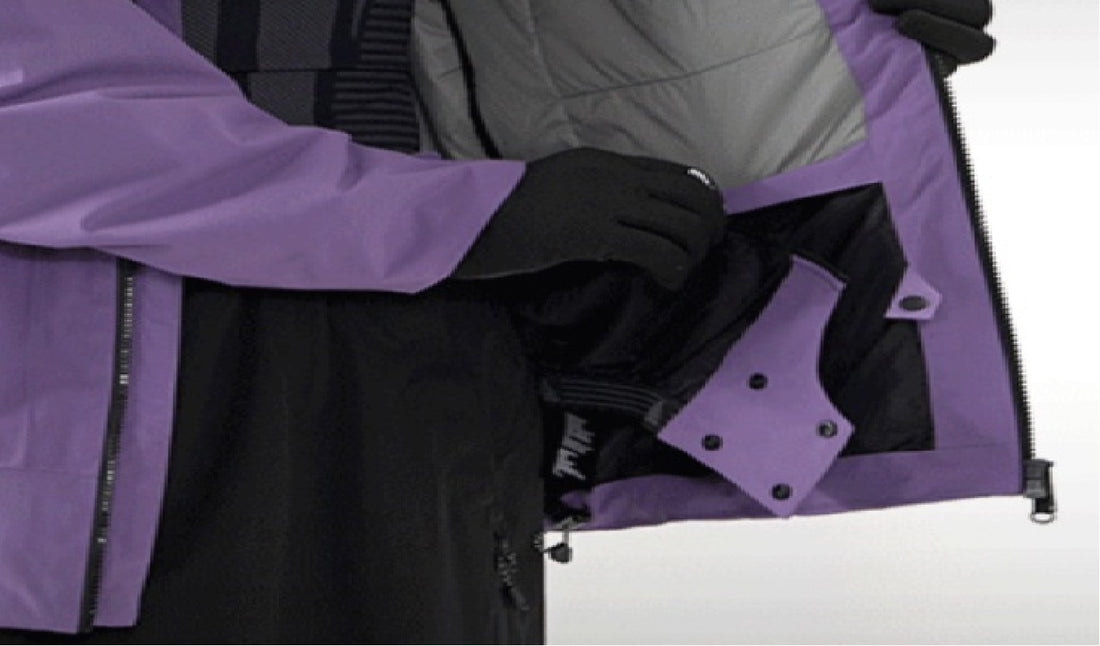 • Pockets: Front zipper pockets, large chest pocket, sleeve pass pocket, internal goggle pocket with cleaning cloth