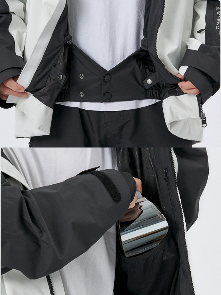 Multiple pockets: chest zipper, sleeve pass pocket, internal goggles pocket, and interior media pocket