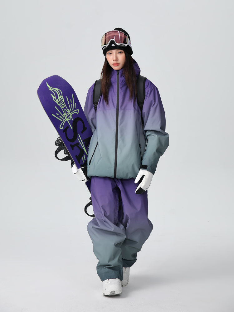 This snow suit combines bold fashion with mountain-ready functionality. The gradient design makes it a statement piece on the slopes, while taped seams, vents, and powder skirts ensure top-tier performance. It’s the perfect choice for women who want to stay warm, dry, and stylish in a single all-in-one suit.