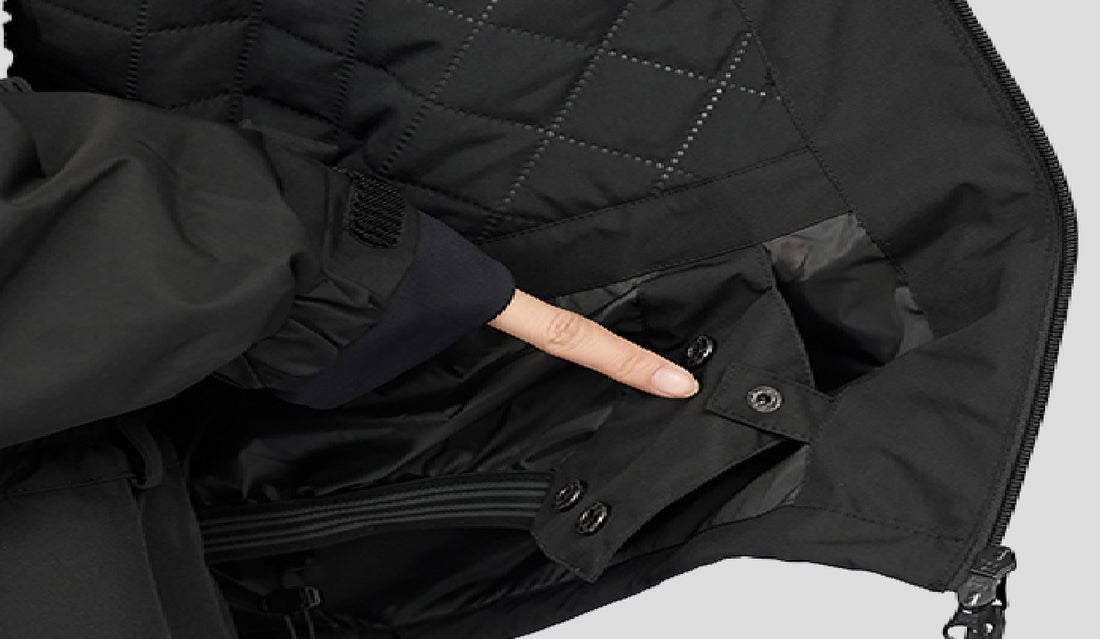 • Snow Protection: Integrated Elastic Powder Skirt and inner stretch cuffs with thumbholes.